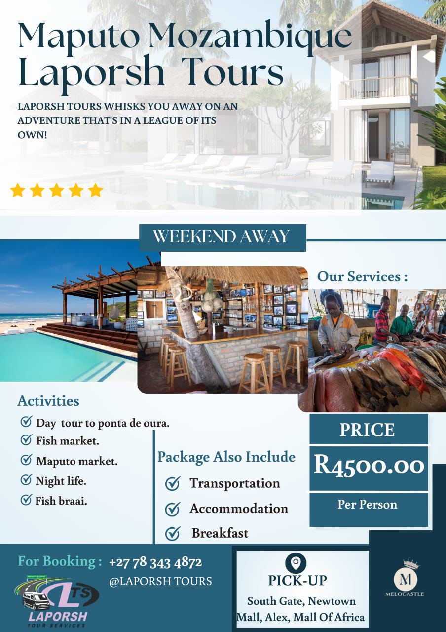 Laporsh Tours is a premium travel agency specializing in creating unforgettable travel experiences for individuals and groups seeking relaxation, adventure, and cultural enrichment. Based in South Africa, we are committed to delivering luxury, convenience, and value, ensuring our clients enjoy their dream vacations without compromise. Our slogan, "Your Gateway to Paradise," captures our promise to curate exceptional travel packages that blend comfort, exploration, and memorable moments.